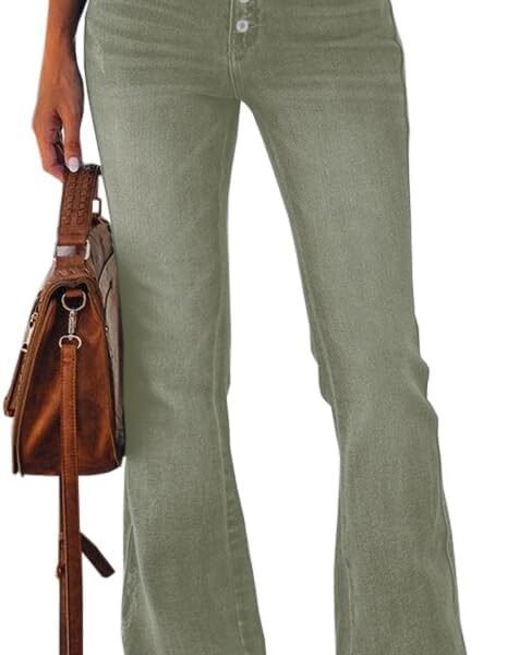 Women's Stretch Flare Jeans High Waisted Bootcut Bell Bottom Button Fly Denim Pants