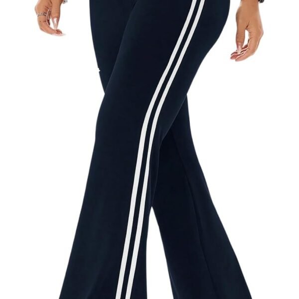 Women's High Waist V Crossover Flare Pants Letter Striped Bell Bottoms Workout Yoga Leggings