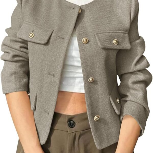 Womens Cropped Tweed Blazers Jacket Collarless Button Down Business Casual 2025 Fall Outfits Winter Coats