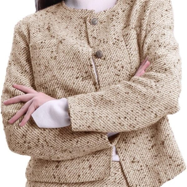 K Tweed Jacket Women Long Sleeve Button Down Collarless Business Casual Blazer Fall Trendy Cropped Jackets
