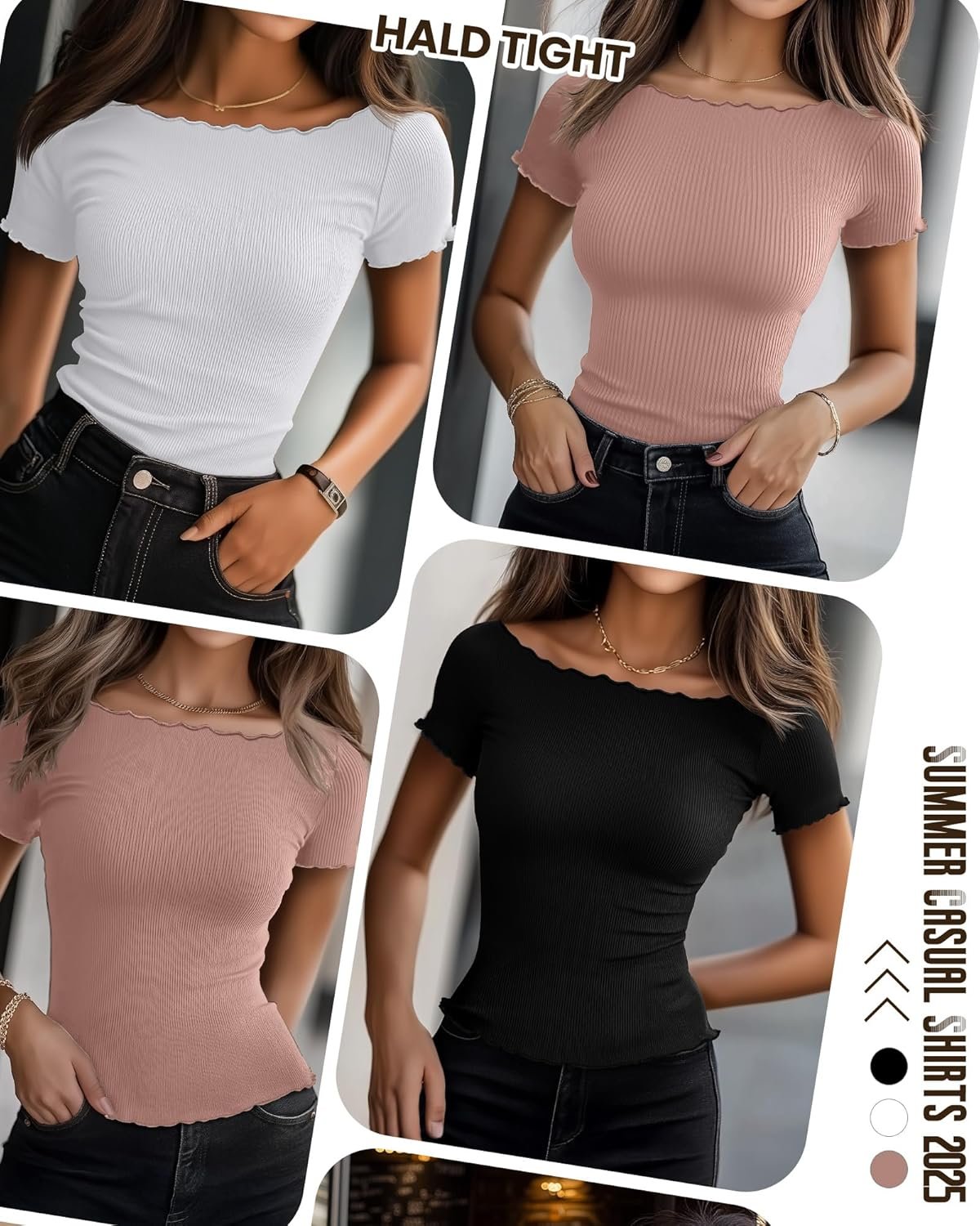 - Boat Neck Features: these boat neck tops feature a slim-fitted, and casual style with a boat neck, short sleeves, solid color, and lettuce trim detailing on the neckline sleeves and hem adding to your trendy, making a stylish statement on any occasion