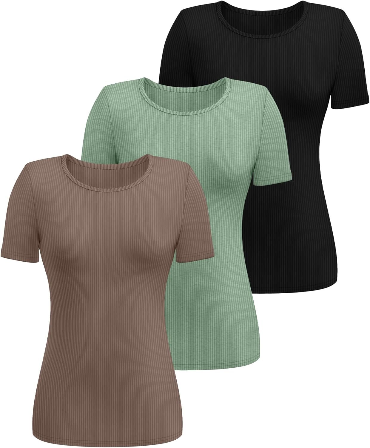 - Stylish Classic Design: these women’s fitted shirts feature a crew neck, short sleeve, slim fit, solid color, and fine ribbing. The crew neck looks clean and shows off your long neck, and the slim fit shape shows off your curves, bringing you a more elegant temperament