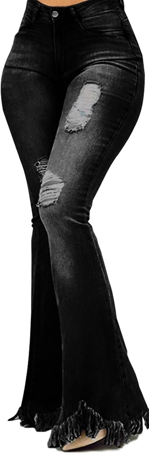 • Features:This classic elegant two color bell bottom jeans,with two pockets at back,skinny,ripped,cowgirl vintage 70s outfits,wide leg denim Pants,tassels design,zip fly closure,pants and frayed hem to complete tretchy and fitted feel.