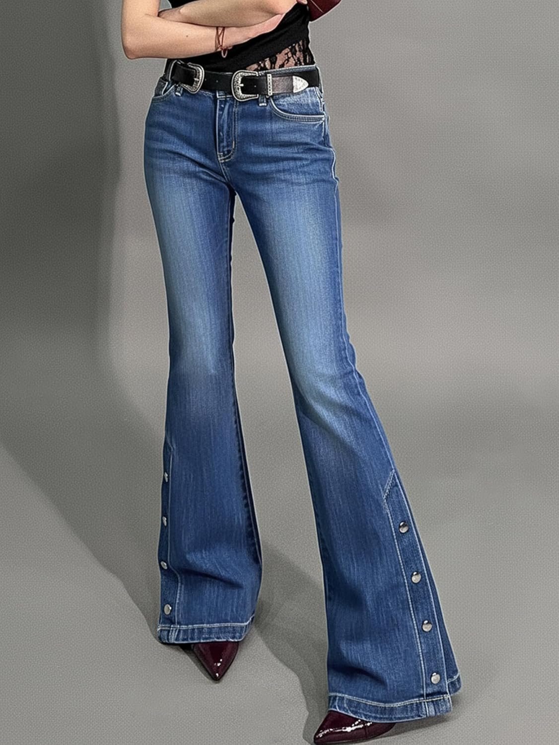 • Style & Trend: Jeans for women trendy revival! These flare jeans pair effortlessly with crop tops, fitted tees, platform shoes, or heeled boots to amplify the 70s vibe. The exaggerated flare leg creates a bold, fashion-forward look perfect for modern retro styling